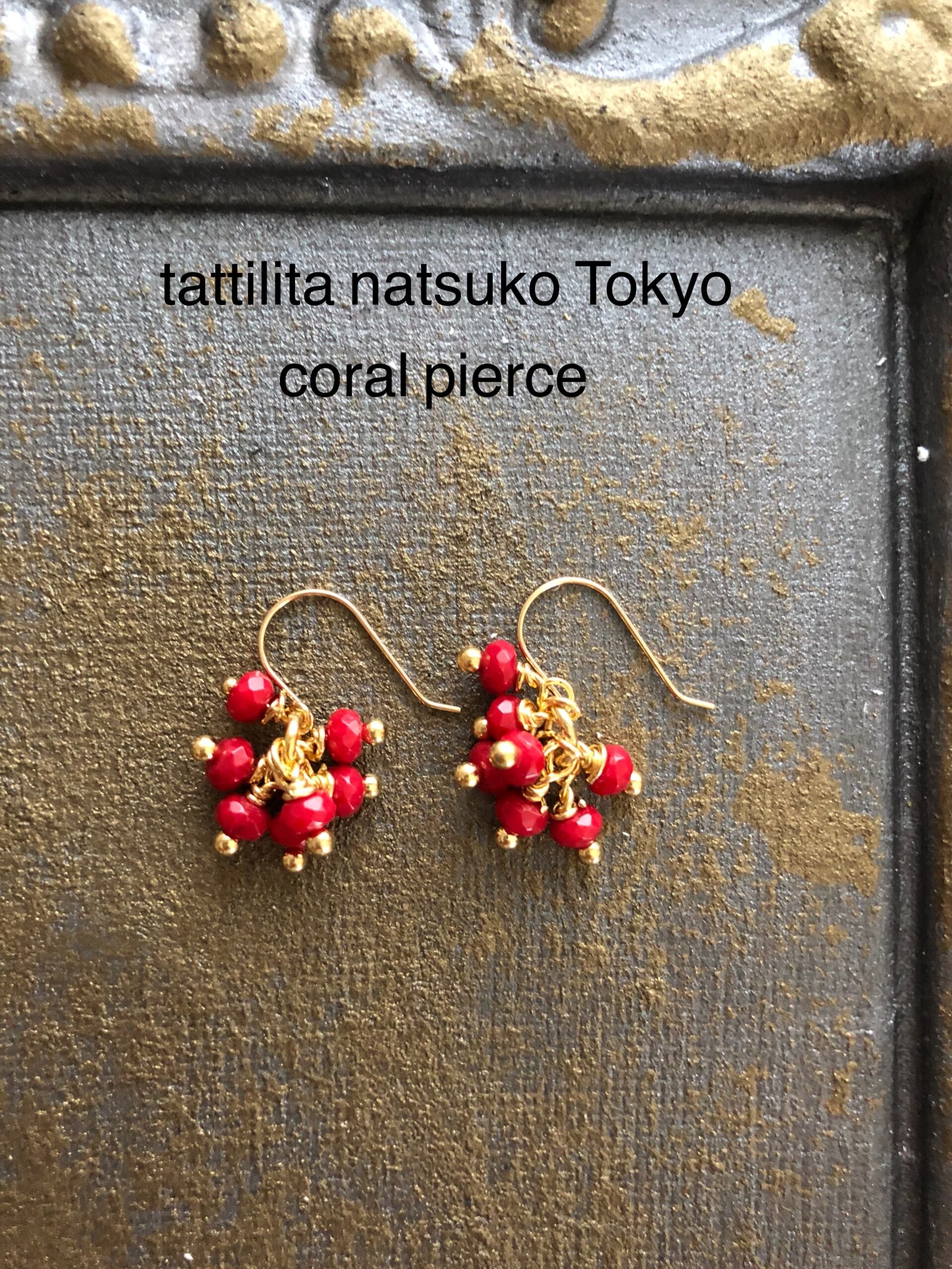 朱色の珊瑚の18kピアスも別ページからご注文承ります。