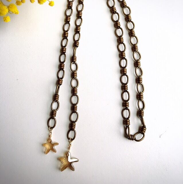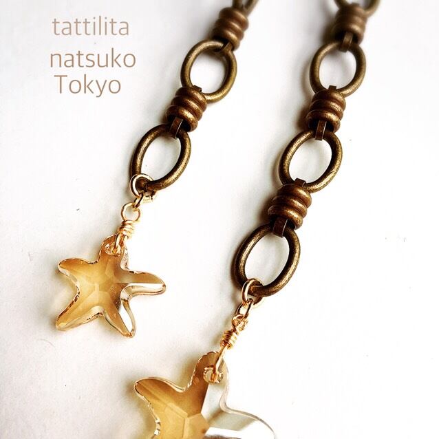 印象的なゴツイチェーンとSwarovskiの星のパーツを組み合わせた夏のラリエット♡