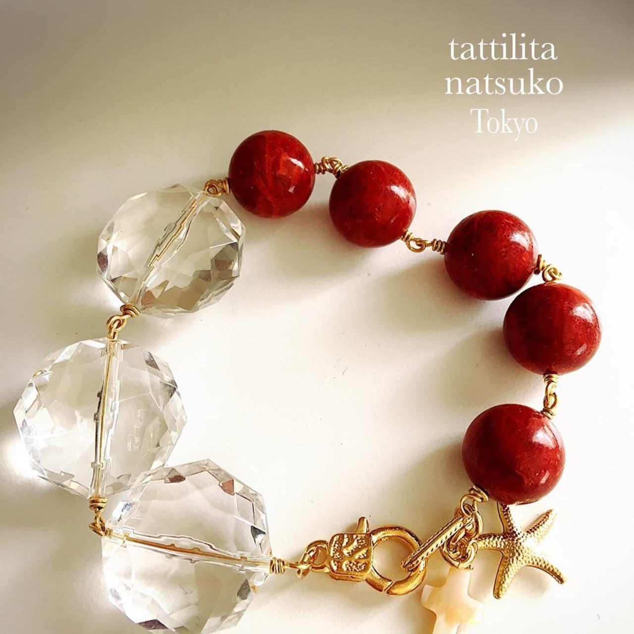 夏のパーツをつなげてブレスレットに