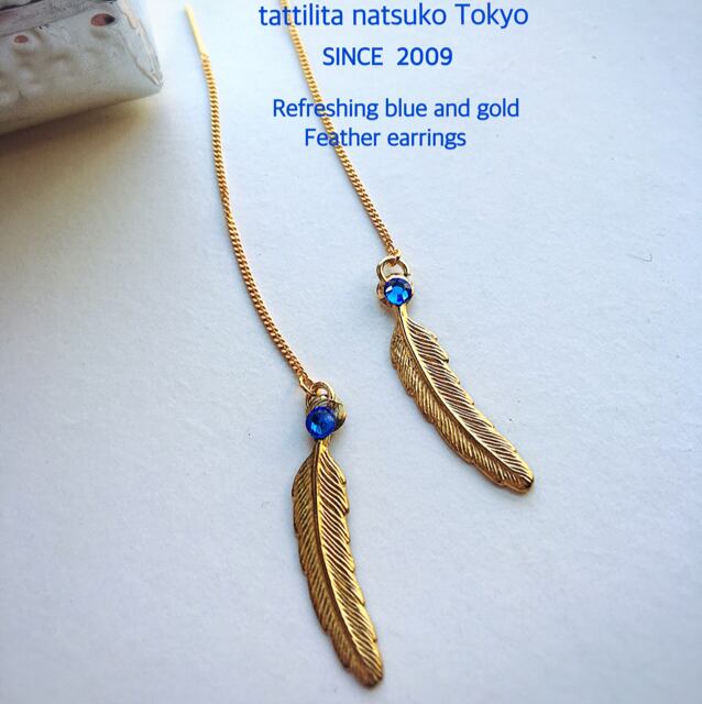 ゴールドの羽のピアス☆