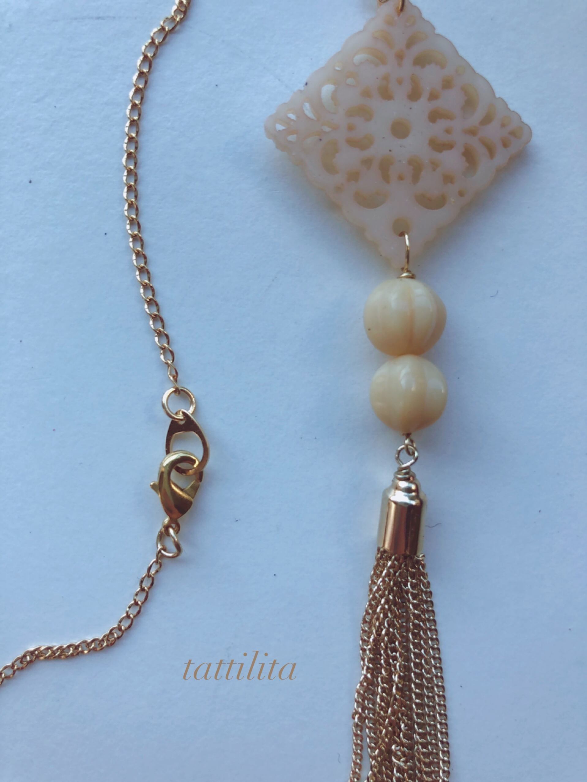 売り切れ!透かしスクエア ネックレスタッセル付き