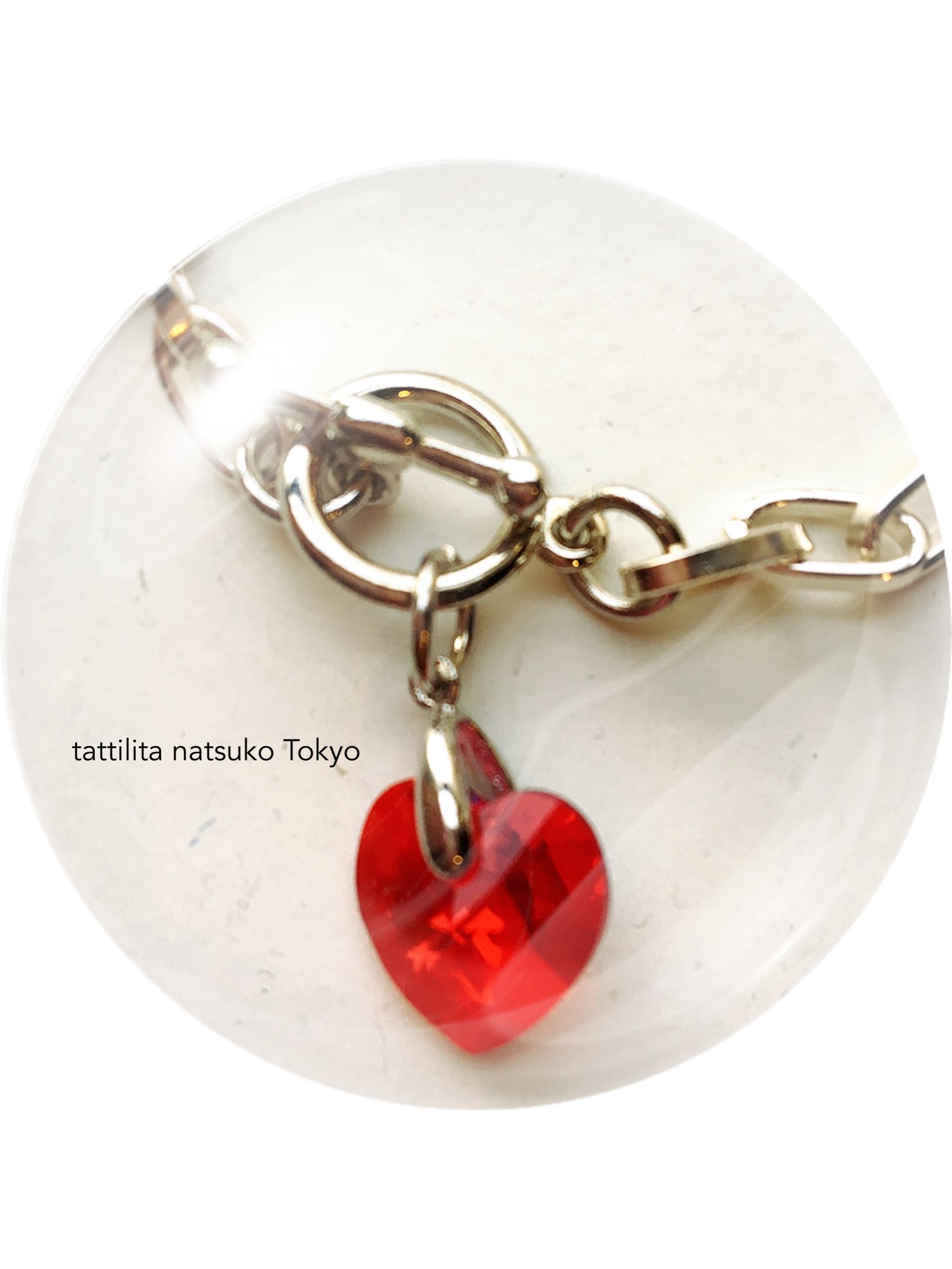 シルバーのCOOLなキラメキに真っ赤なハートが熱く映えるブレスレット